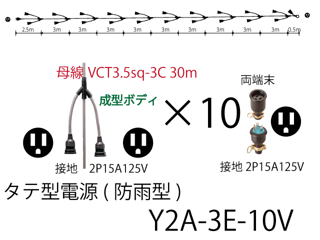 | Y2A-3E-10V | 30 | 3.5sq-3C | 0.25 | 2.0sq-3C | 20 | 接地2P15A | ||