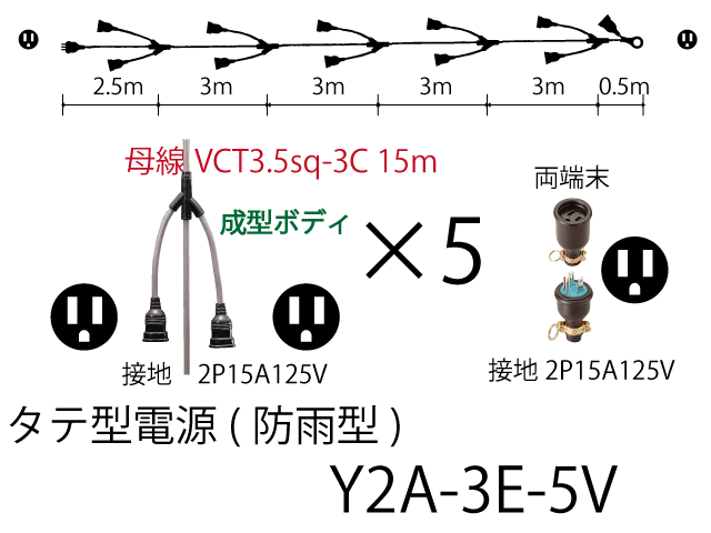| Y2A-3E-5R | 15 | 3.5sq-3C | 0.25 | 2.0sq-3C | 10 | 接地2P15A | ||