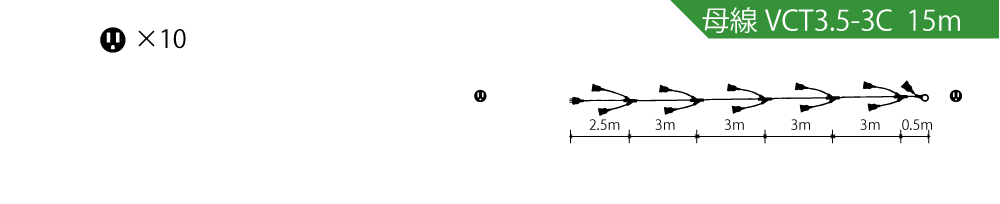 | 長さ(m) | 使用電線 | 長さ(m) | 使用電線 | (数) | 標準 プラグ 形状 |