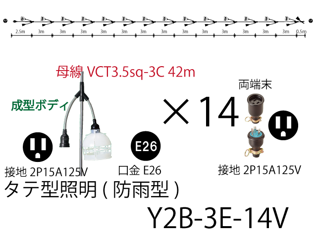 | Y2B-3E-14V | 42 | 3.5sq-3C | 0.2 | 電源 2.0sq-3C 照明 1.25sq-2C |