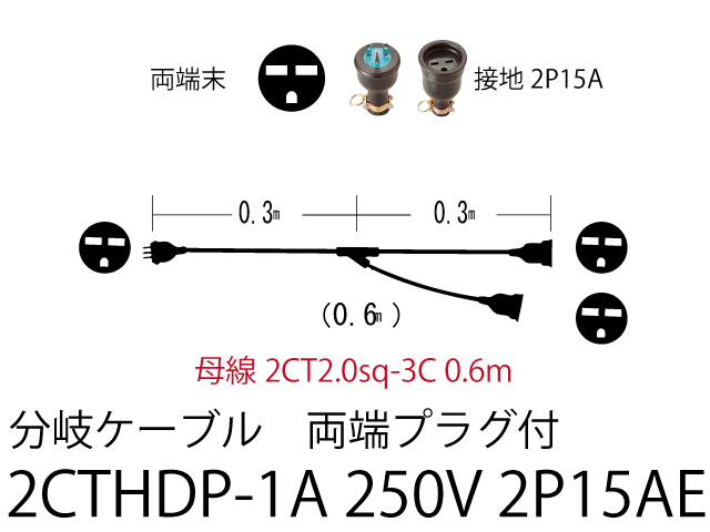 分岐ケーブル 2CTHDP-1A-250V-2P15AE