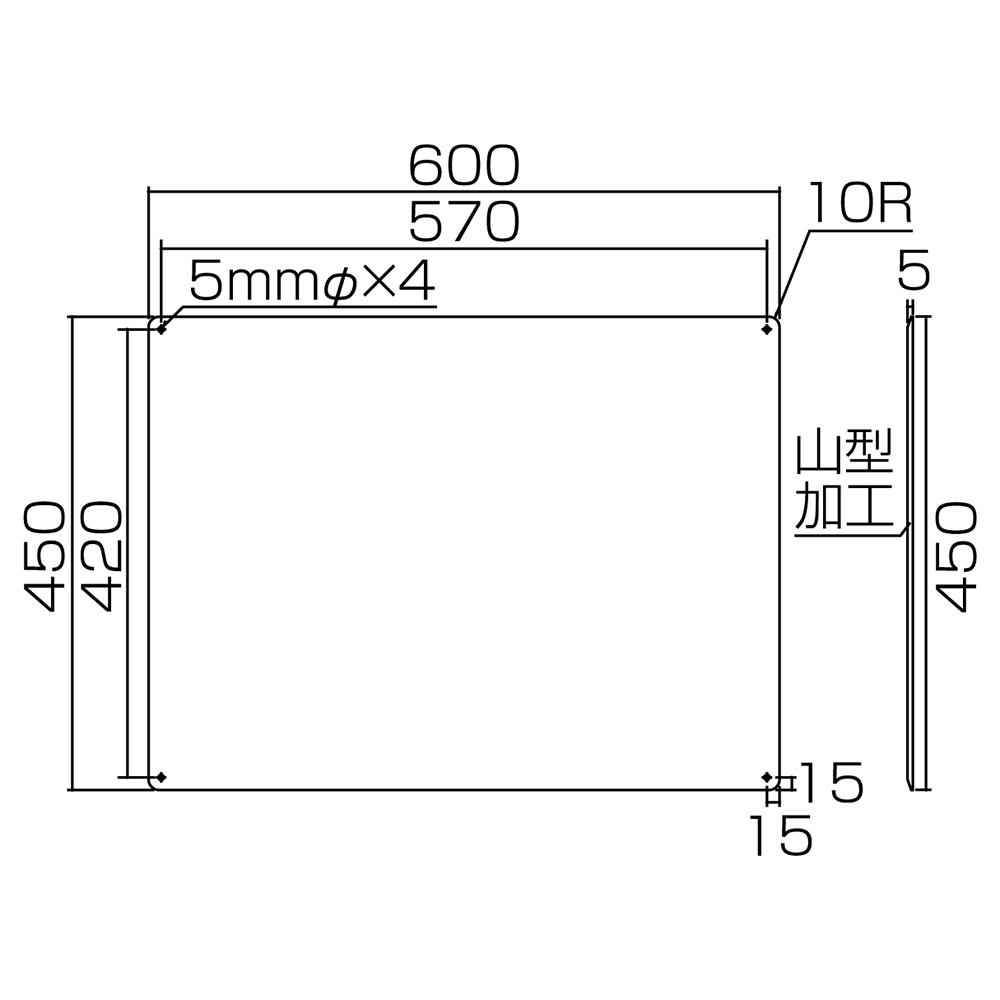 メーカー:日本緑十字社 サイズ 450×600×0.8mm 材質 スチール 仕様 5mmΦ穴×4 山型