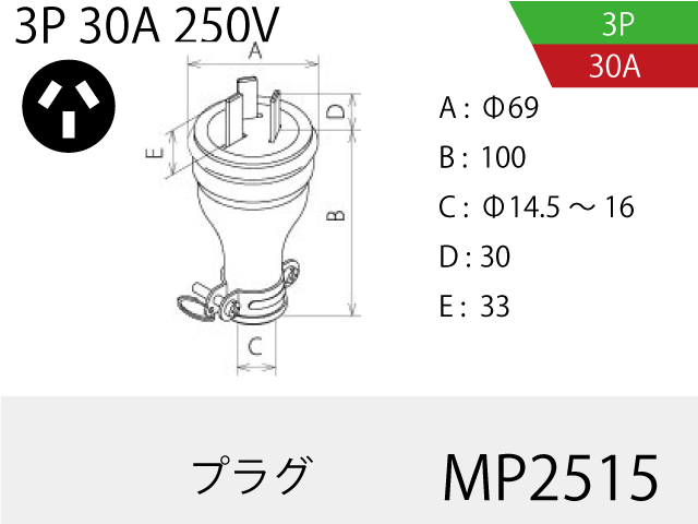 接地3P 30A 250V |