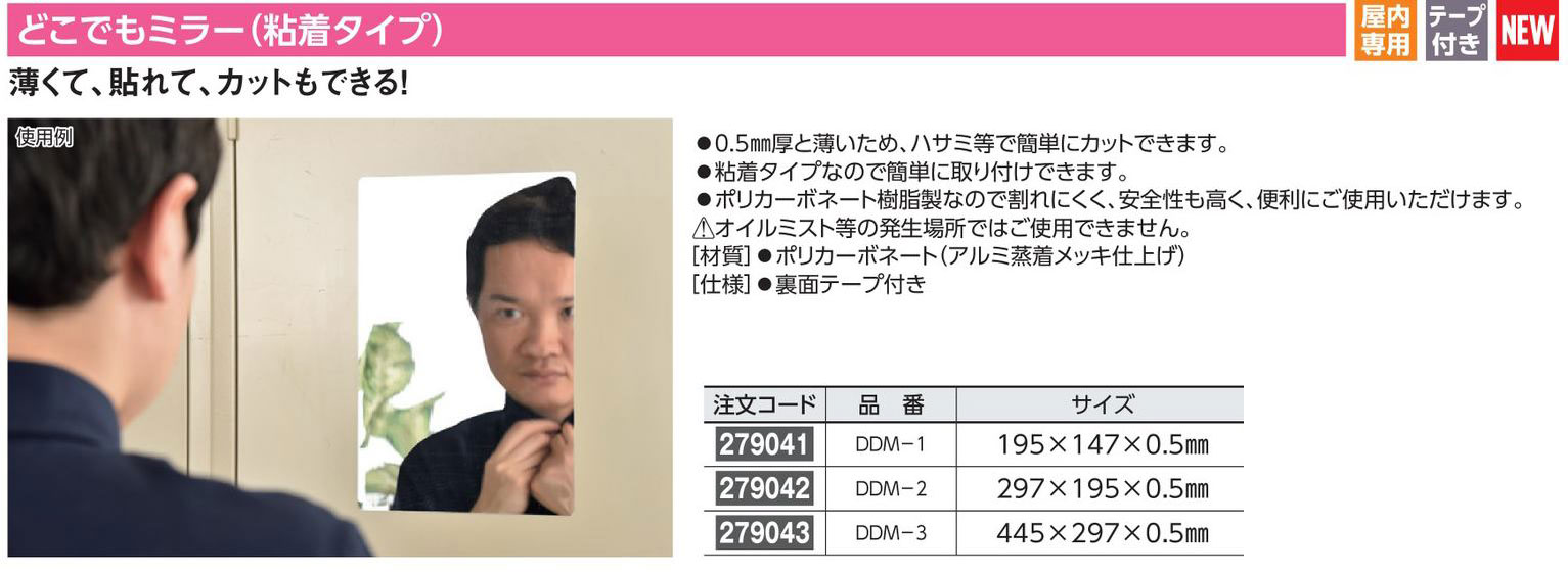 - どこでもミラー(粘着タイプ) 279043 DDM-3