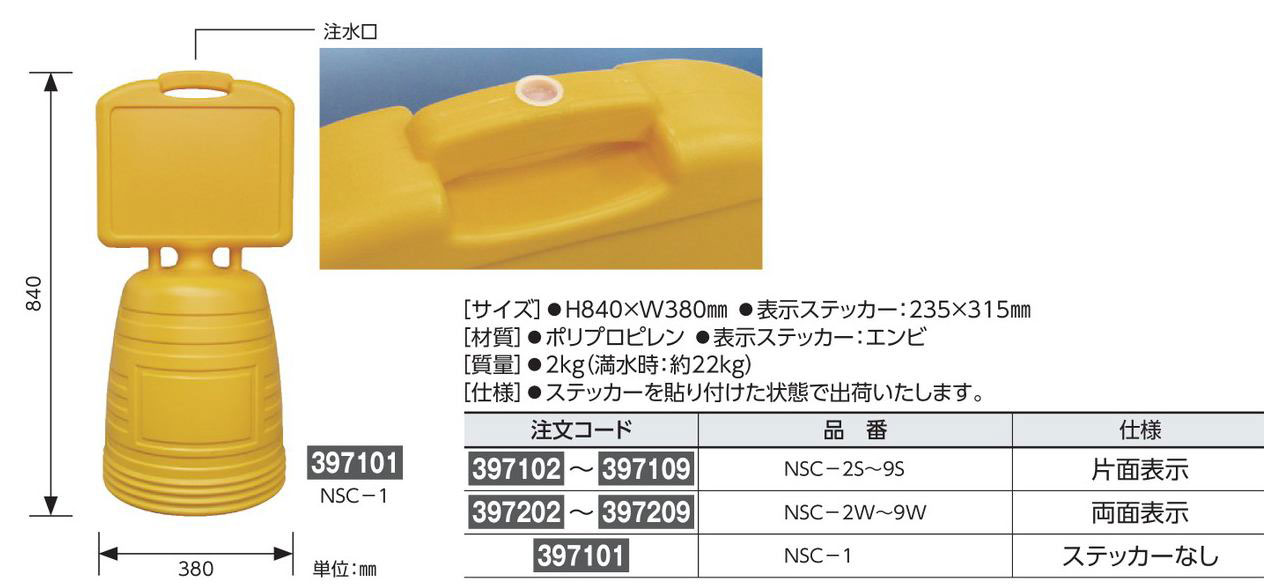 サイズ H840×W380mm 表示ステッカー:235×315mm 材質 本体:ポリプロピレン 表示ステッカー:エンビ 質量 2kg(満水時:約22kg) 仕様 ステッカーなし
