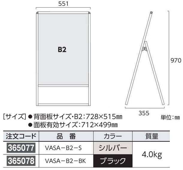 A型スタンド看板 B2 ブラック 365078 VASA-B2-BK