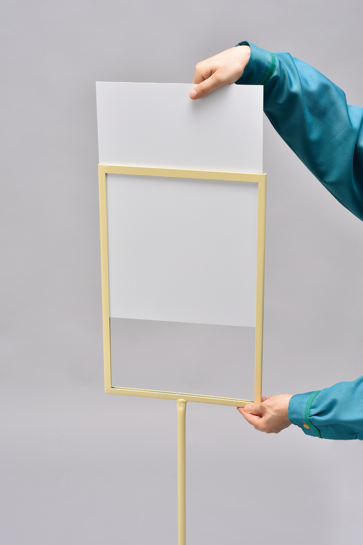 メーカー:日本緑十字社 カラー アイボリー サイズ スタンド全長:1370mm プレート:450×300×3mm 材質 スタンド:スチール プレート:硬質エンビ 質量 約3.1kg 仕様 両面無地板 ※オリジナルメッセージも製作致します。(別途お見積もり)