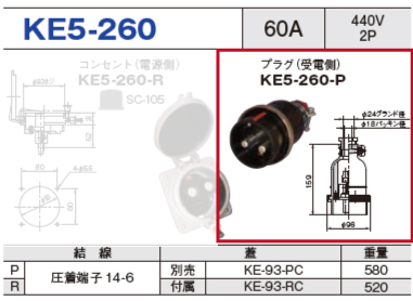 埋込型コネクタ KE5-260 コンセント プラグ セットKE5-260-R,KE5-260-P