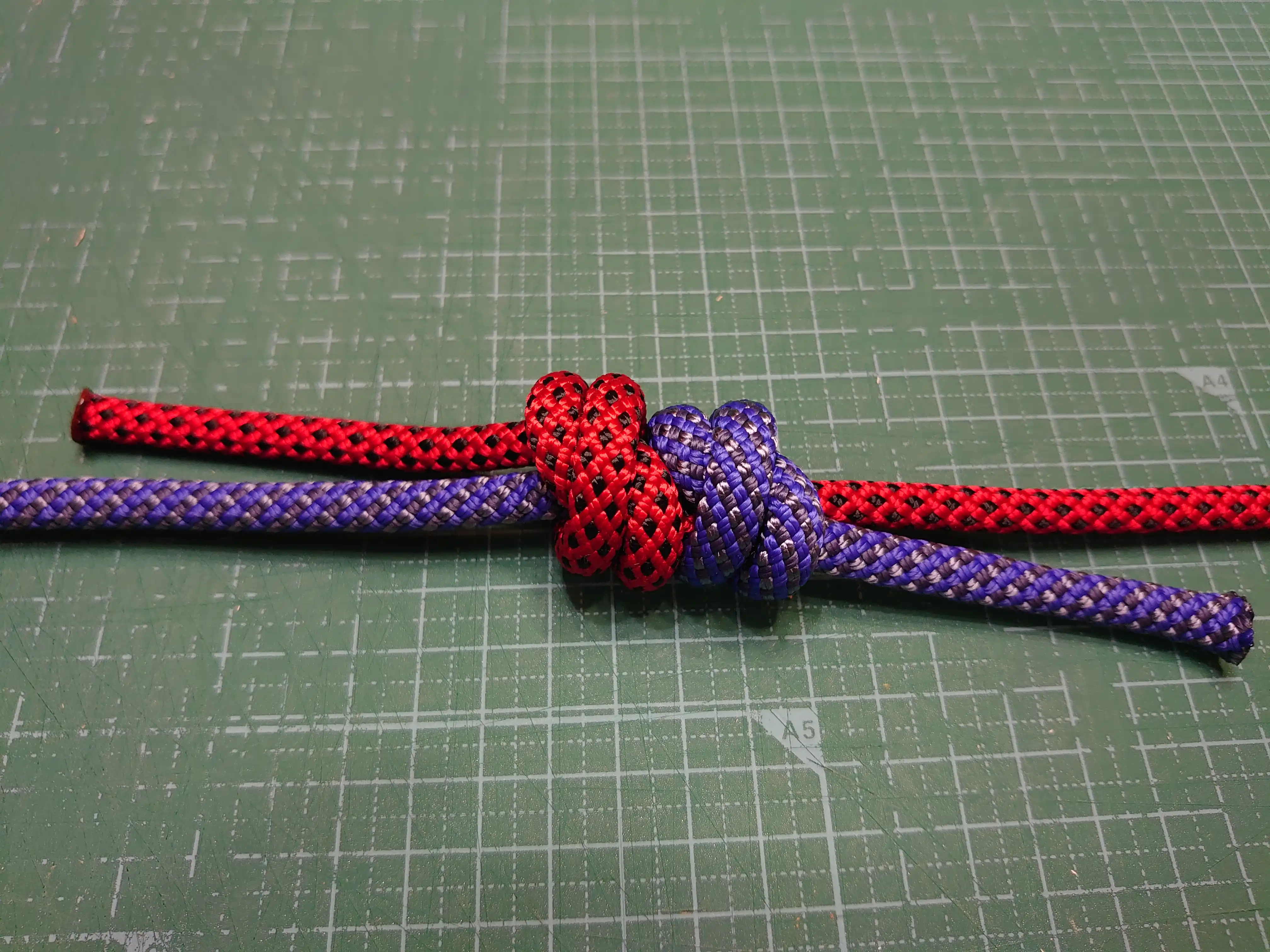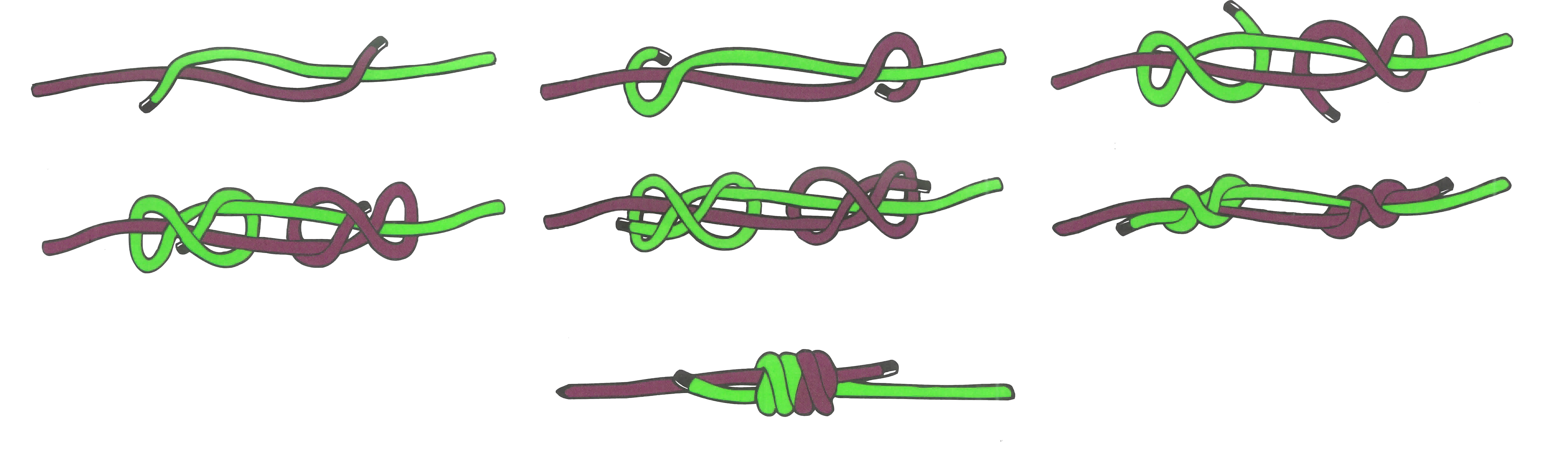 ロープの端と端をつなぐための結び方です。滑りやすい材質のロープとロープつなぐのに適したロープワーク