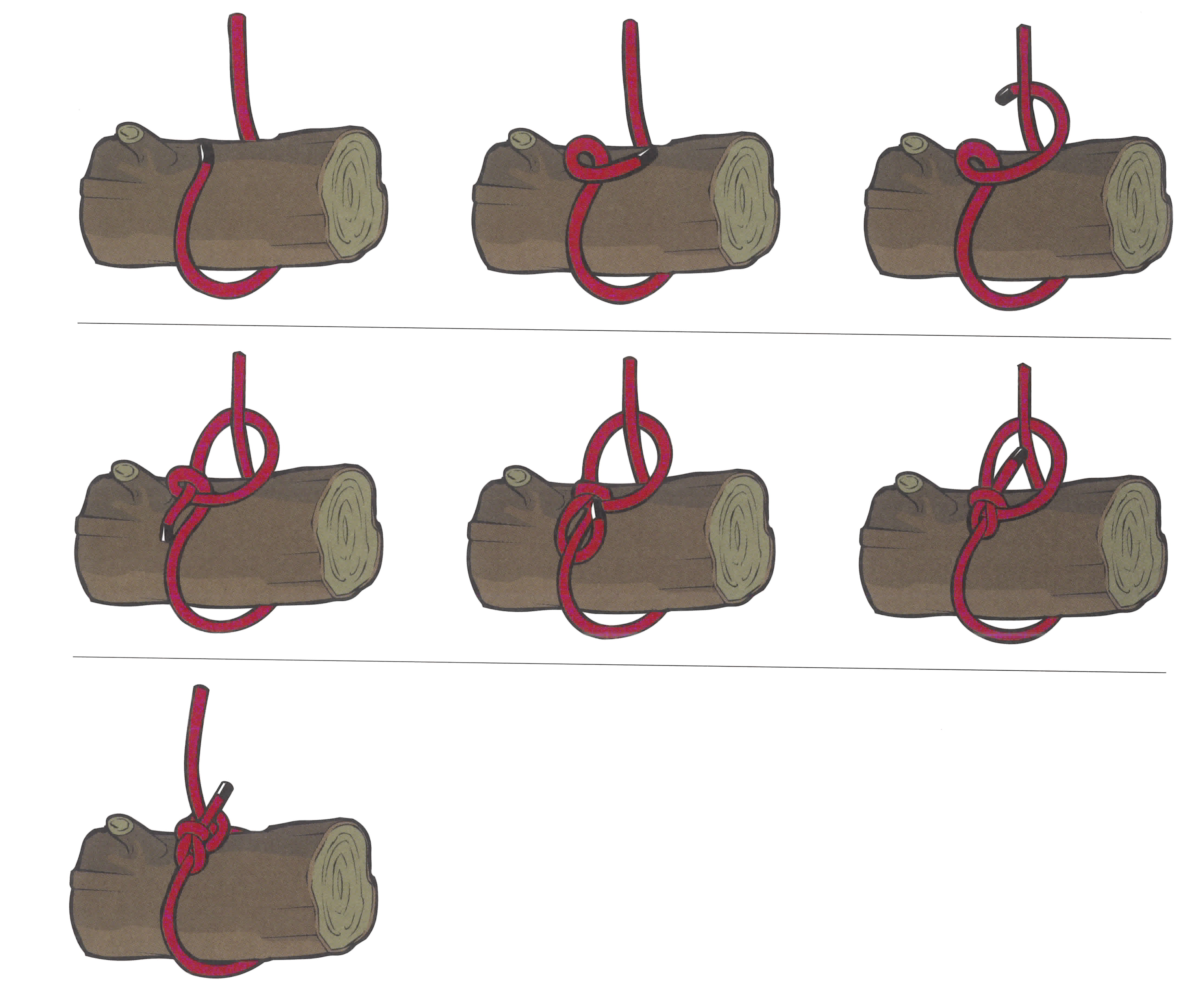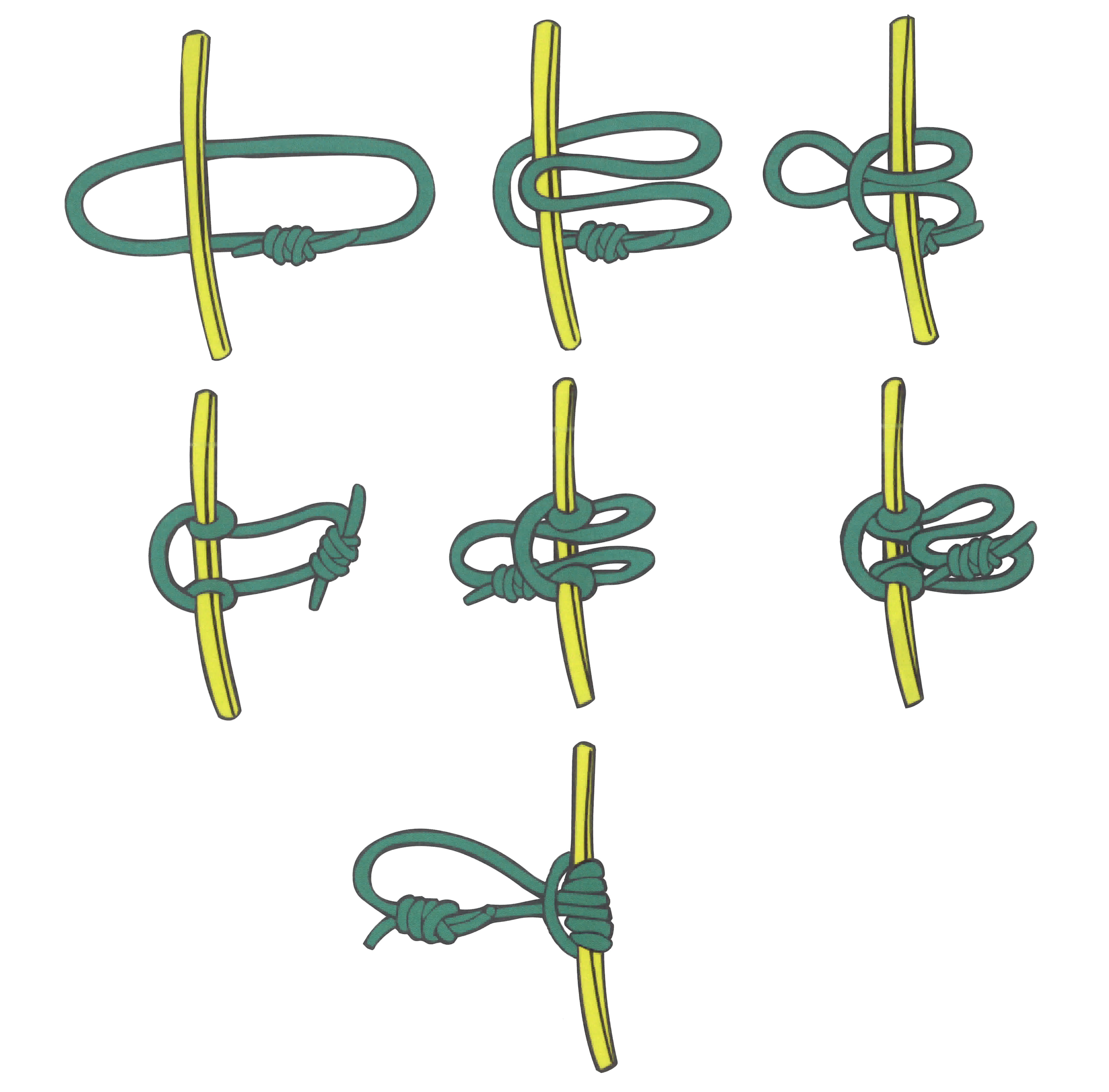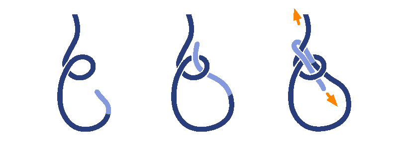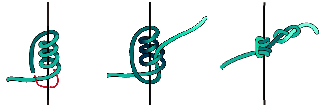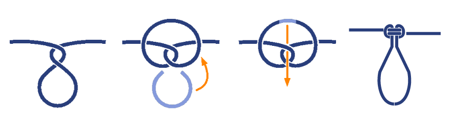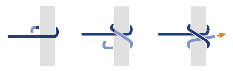 ロープや木などの対象物に対して輪っか状のロープを結び付けるロープワークです。 結び目を滑るように左右へ移動させることが可能で、輪っかに負荷がかかると結び目が締まり左右に動かなくなります。 結び目の移動と固定が簡単におこなえるのが特徴です。