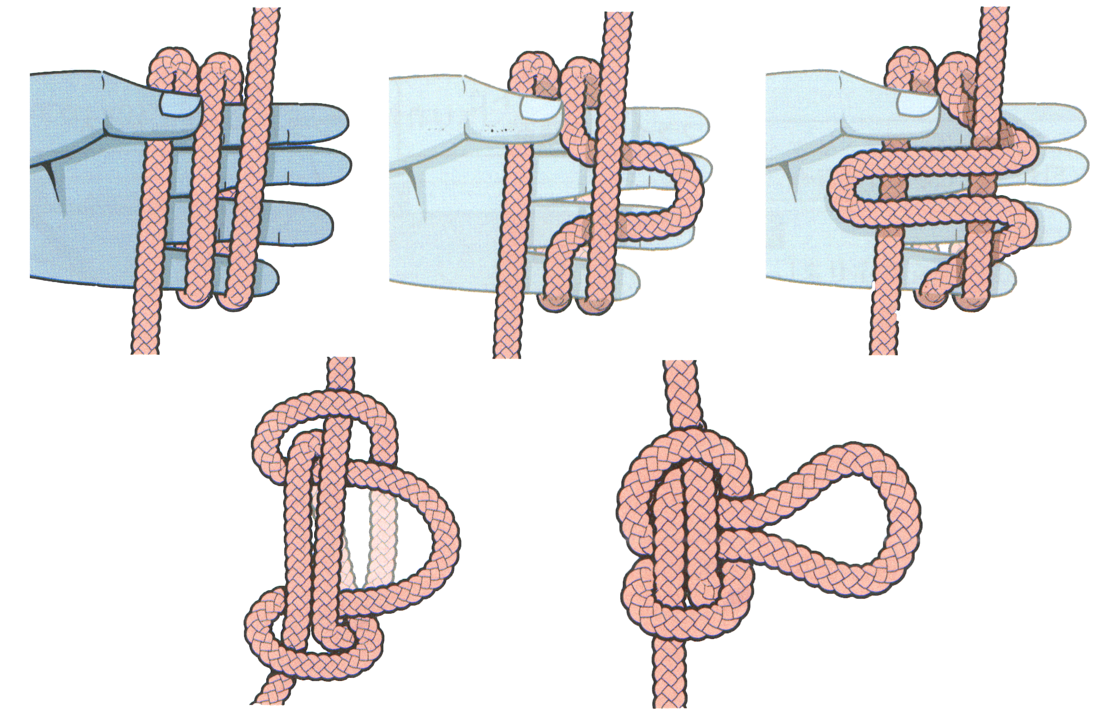 ロープを2つ折りにした状態で、1本のロープだと思って8の字結び